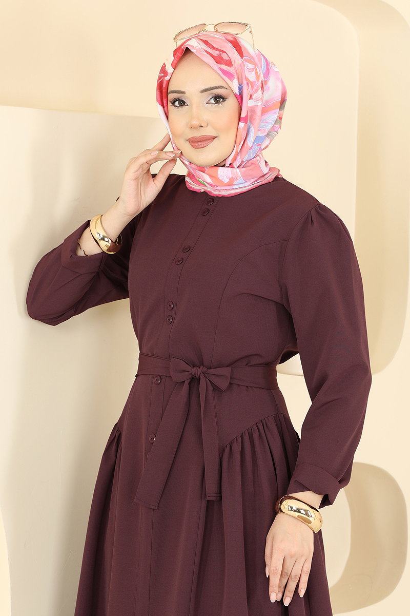Önden Çift Düğmeli Elbise 3086KTR750 Mürdüm