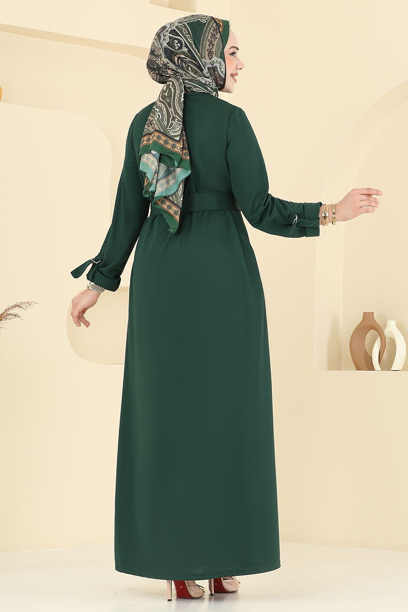 Önden Çıtçıtlı Tesettür Elbise Zümrüt