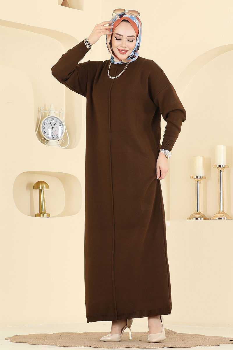 Önden Çizgi Detaylı Elbise 2772AYD574 Kahve