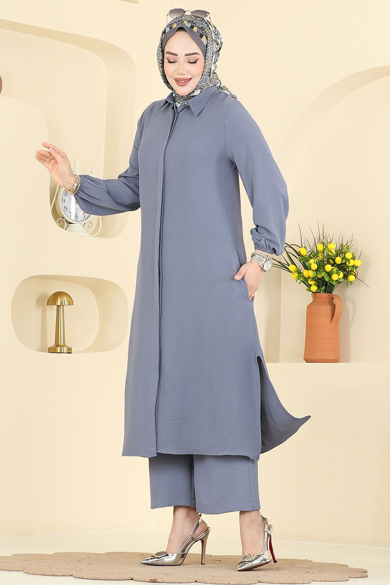 Önden Düğmeli 2 li Takım 3031SMD1186 Gri