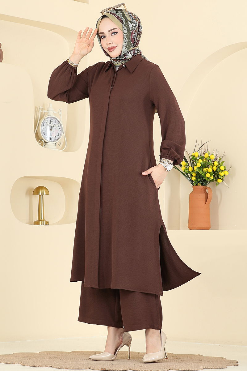 Önden Düğmeli 2 li Takım 3031SMD1186 Kahve