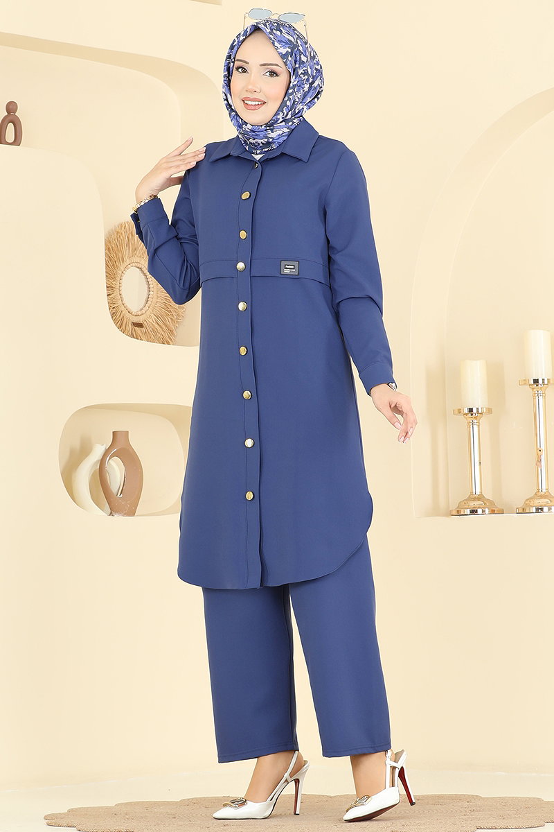 Önden Düğmeli 2 li Takım PL9218 İndigo