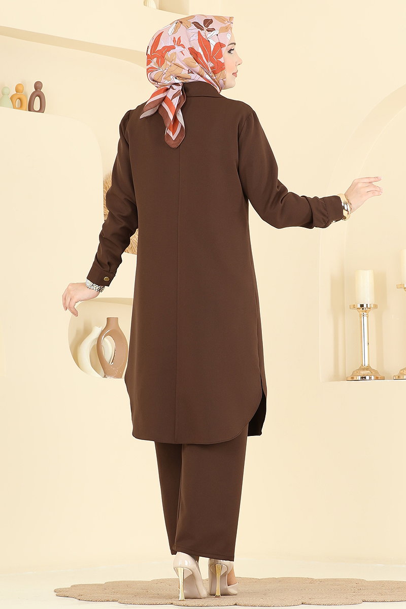 Önden Düğmeli 2 li Takım PL9218 Kahve