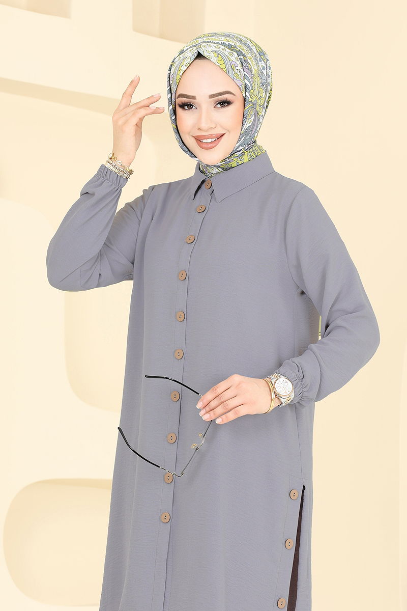 Ürün Özelliği : Yeni sezon tesettür moda ürünüdür. Ürün Gömlek yakadır. Ürün Önden düğmelidir. Yırtmaç düğmeleri aksesuardır.. Astarsızdır. Pantolon beli lastiklidir. Manşeti lastiklidir. Konsept fotoğraf çekimlerinden dolayı üründe ton farklılığı olabilir.