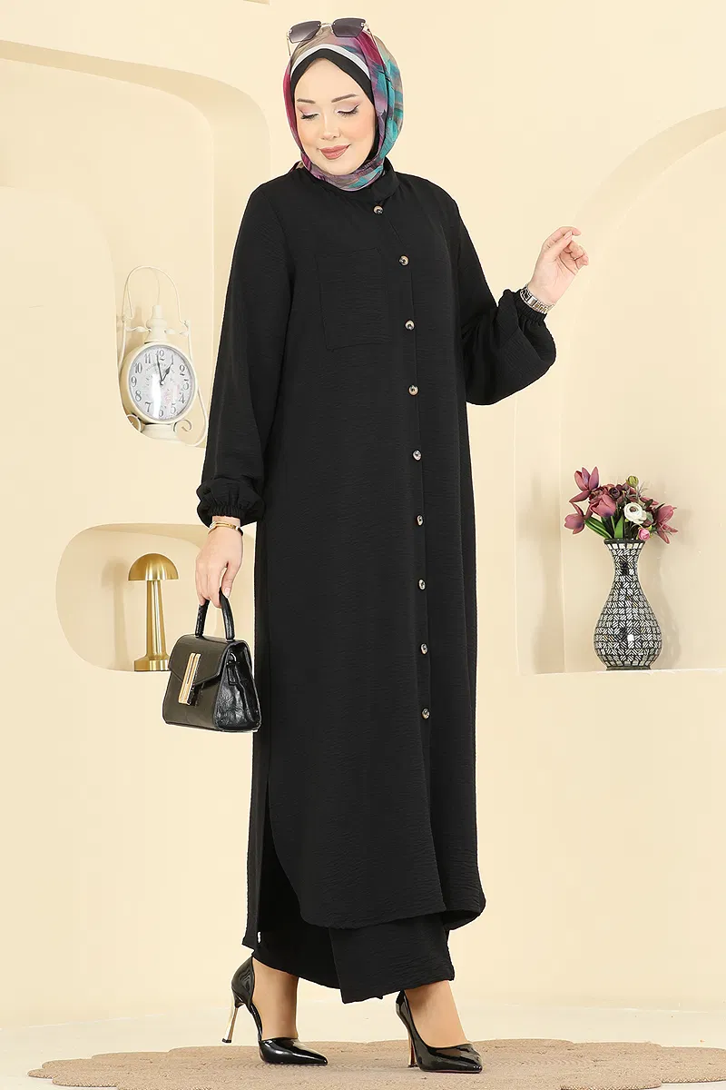Göğüs Cep Detaylı Tesettür Kombin, her mevsim rahatlıkla kullanabileceğiniz aerobin kumaştan üretilmiştir. Hassas yıkama ile 30 derecede yıkanabilen bu ürün, yarım hakim yaka ve ön düğmeli tasarımı ile şıklığı pratiklikle buluşturur. Tunik yan yırtmaç detaylı ve astarsızdır. Pantolonun beli lastikli ve manşetleri lastiklidir. Tunikte bulunan aktif göğüs cebi ise fonksiyonelliği artırır. Bu zarif tesettür kombin, rahatlığı ve şıklığı bir arada sunarak tüm gözleri üzerinize çeker. (Modelin üzerindeki ürün 40 bedendir.)