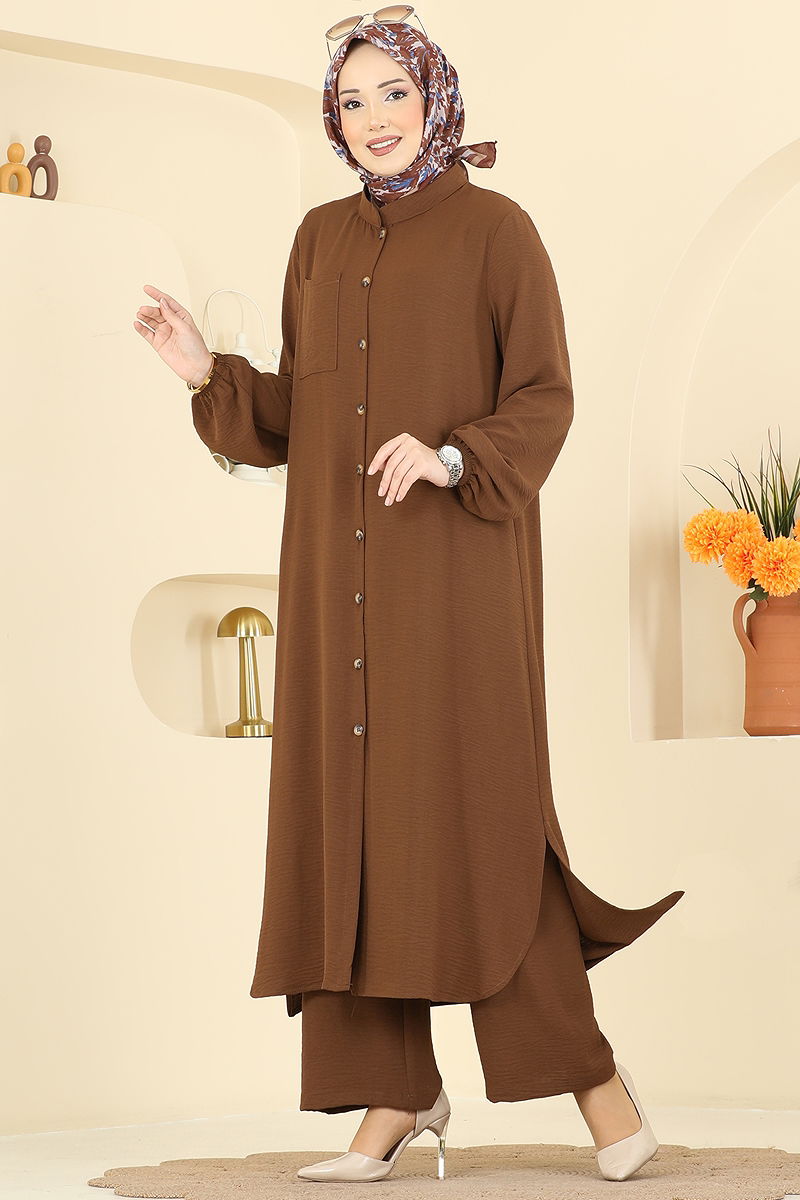 Göğüs Cep Detaylı Tesettür Kombin, her mevsim rahatlıkla kullanabileceğiniz aerobin kumaştan üretilmiştir. Hassas yıkama ile 30 derecede yıkanabilen bu ürün, yarım hakim yaka ve ön düğmeli tasarımı ile şıklığı pratiklikle buluşturur. Tunik yan yırtmaç detaylı ve astarsızdır. Pantolonun beli lastikli ve manşetleri lastiklidir. Tunikte bulunan aktif göğüs cebi ise fonksiyonelliği artırır. Bu zarif tesettür kombin, rahatlığı ve şıklığı bir arada sunarak tüm gözleri üzerinize çeker. (Modelin üzerindeki ürün 40 bedendir.)