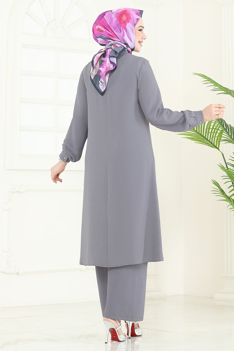 Önden Düğmeli Aerobin Takım PL9149 Gri