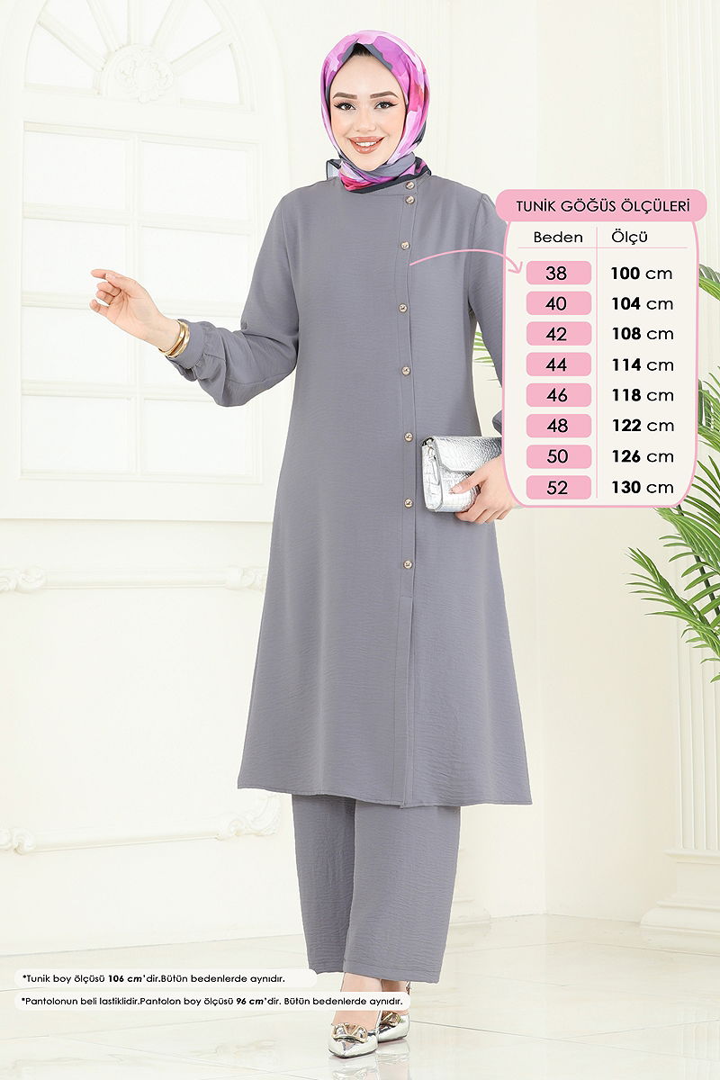 Ürün Özelliği : Yeni sezon tesettür moda ürünüdür. Ürün Yarım Hakim yakadır. Ürün Önden düğmelidir. Yırtmaçlıdır.. Astarsızdır. Pantolon beli lastiklidir. Manşet düğmeleri aktiftir. Konsept fotoğraf çekimlerinden dolayı üründe ton farklılığı olabilir.