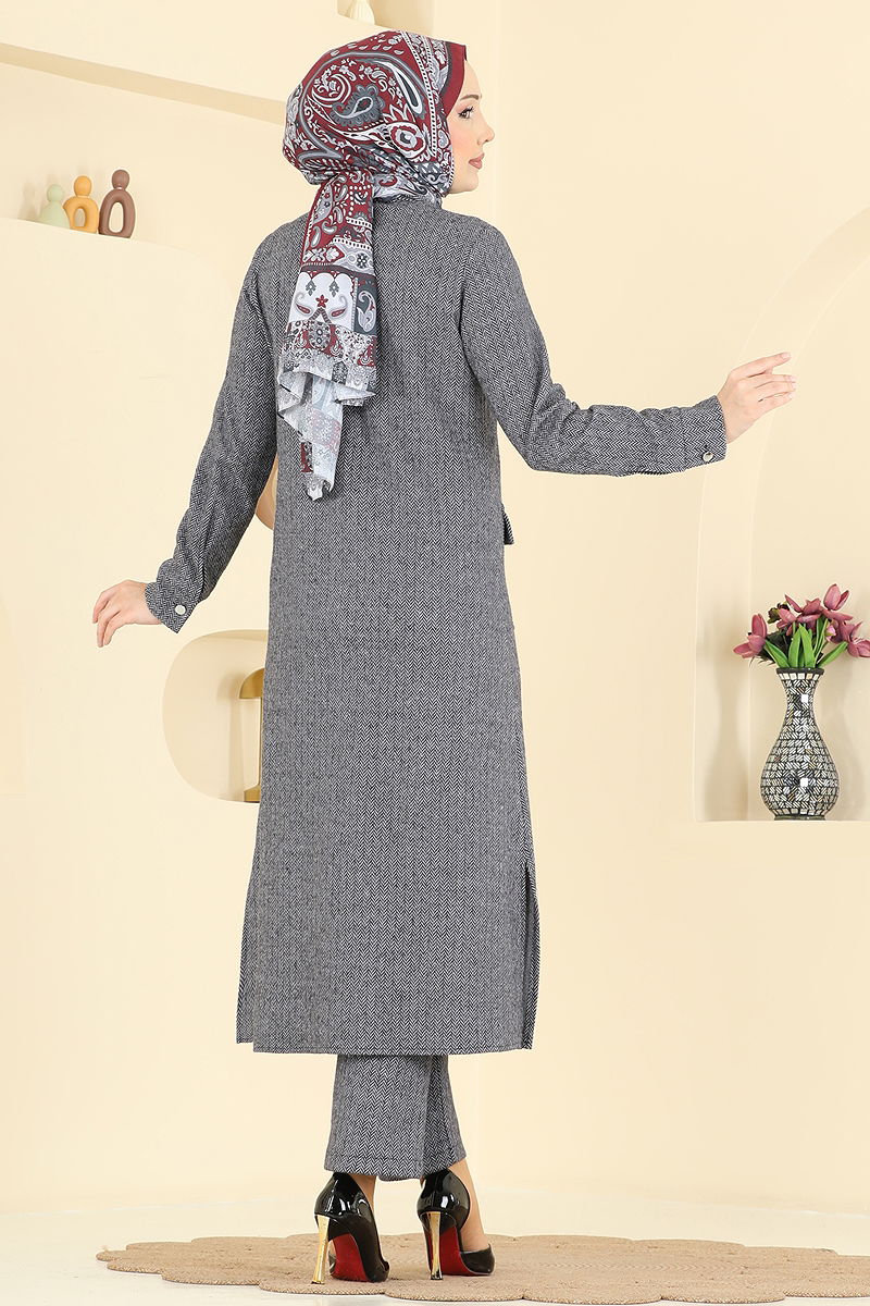 Önden Düğmeli Balıksırtı Takım 24022UKB139 Gri