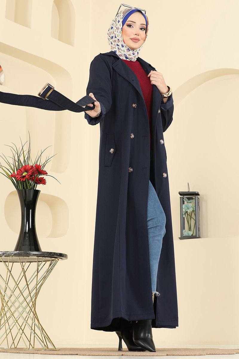 Önden Düğmeli Bondit Trençkot, özellikle sonbahar ve kış mevsimlerinde tercih edebileceğiniz, tesettür tarzına uygun bir üründür. Hassas yapılı Bondit kumaştan üretilen trençkot, 30 derecede yıkanabilir özelliği ile pratik bir kullanım sunar. Gömlek yakası ve ön düğmeleri ile şık bir görünüm sağlayan ürün, astarlıdır ve rahat bir kullanım vadeder. Ürünle birlikte gelen ve dalgalanmayı önleyecek şekilde tasarlanmış kemer, isteğe bağlı olarak çıkarılabilir. Ayrıca, kullanışlı ceplere sahiptir. Modelin üzerindeki trençkot 42 bedendir.