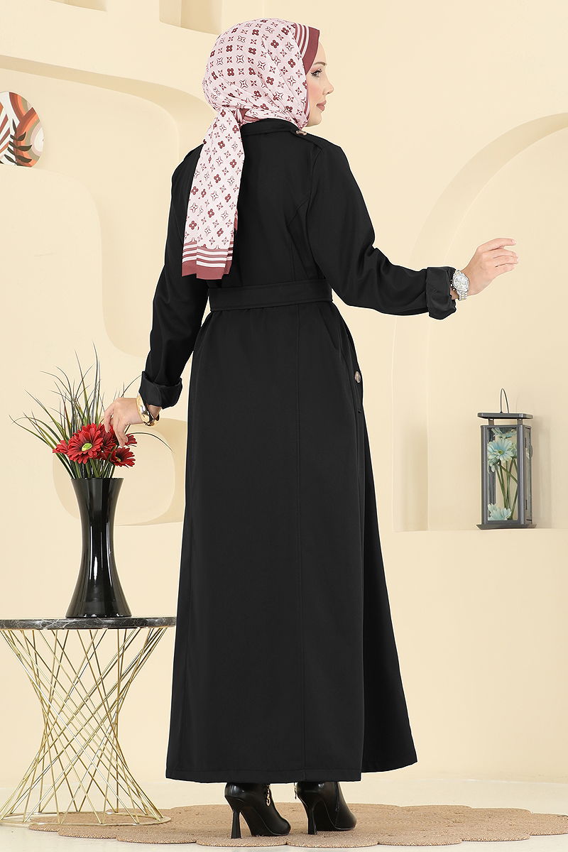 Önden Düğmeli Bondit Trençkot Siyah