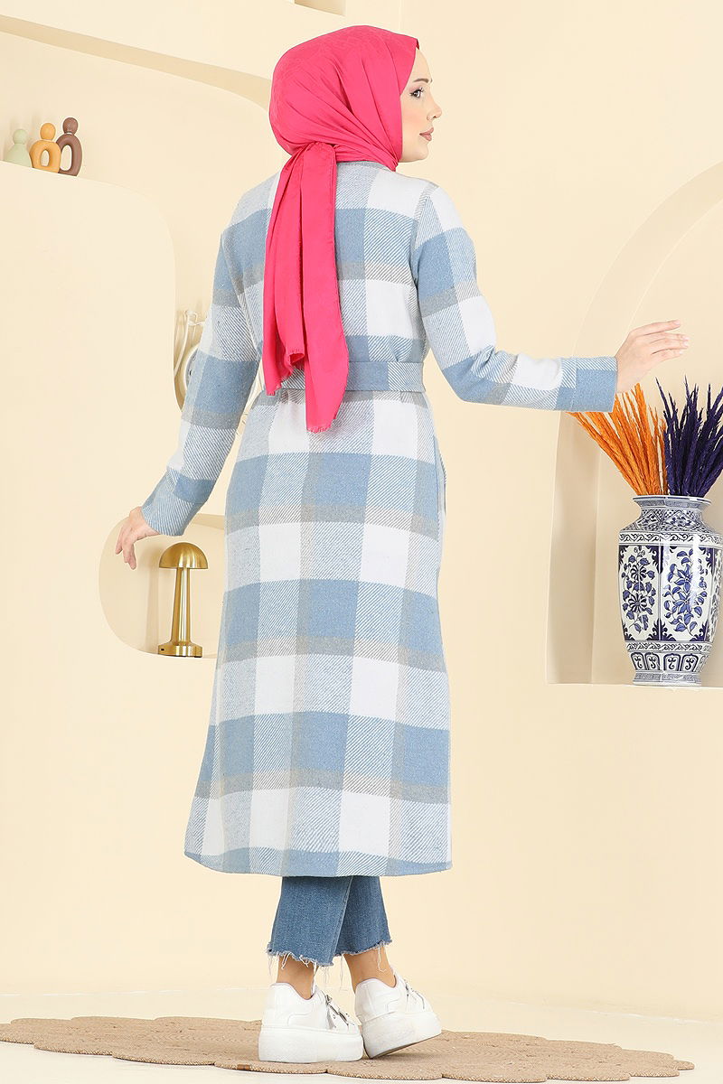 Önden Düğmeli Ekose Kap 24088UKBK1160 Mavi