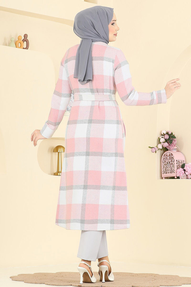 Önden Düğmeli Ekose Kap Pudra
