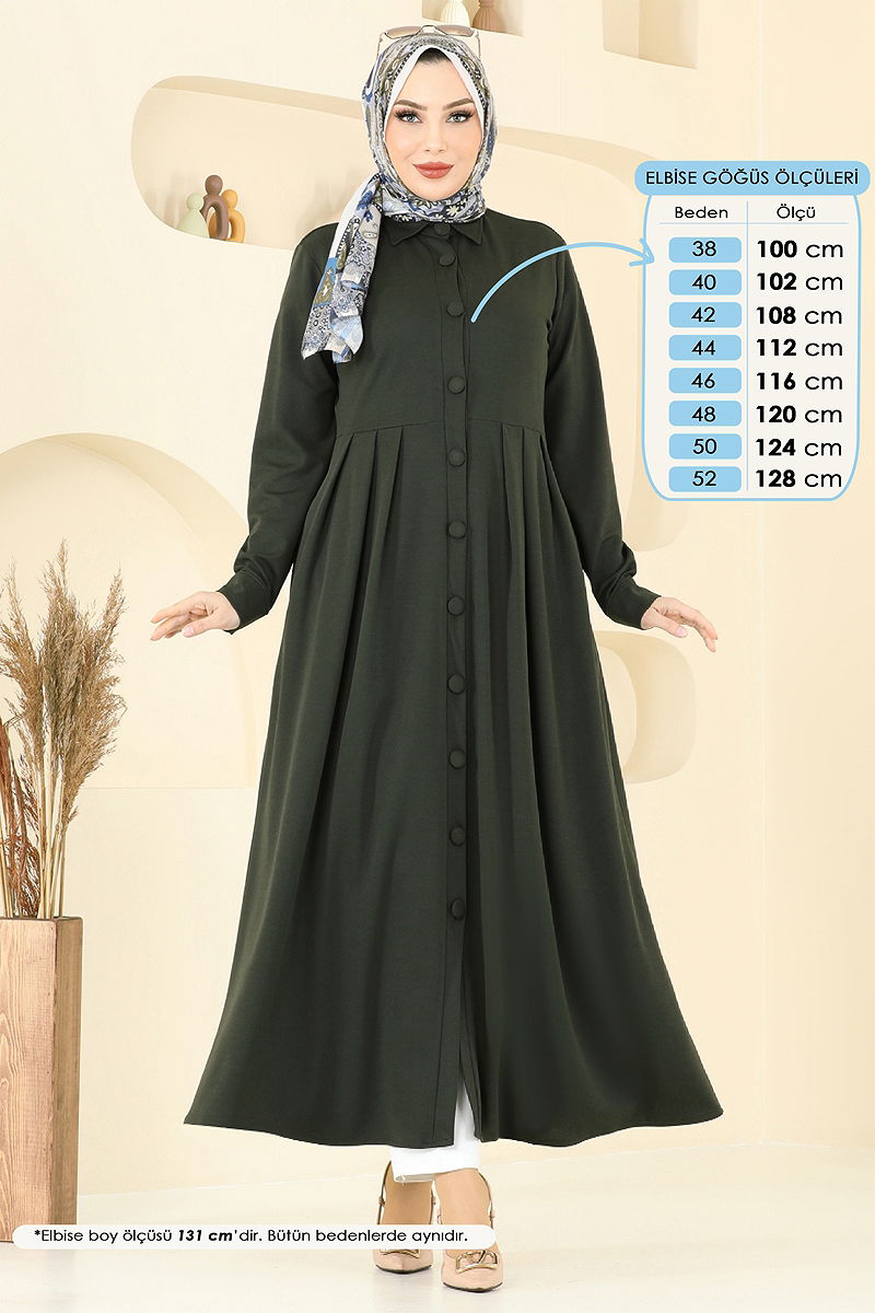 Önden Düğmeli Elbise Ferace Haki