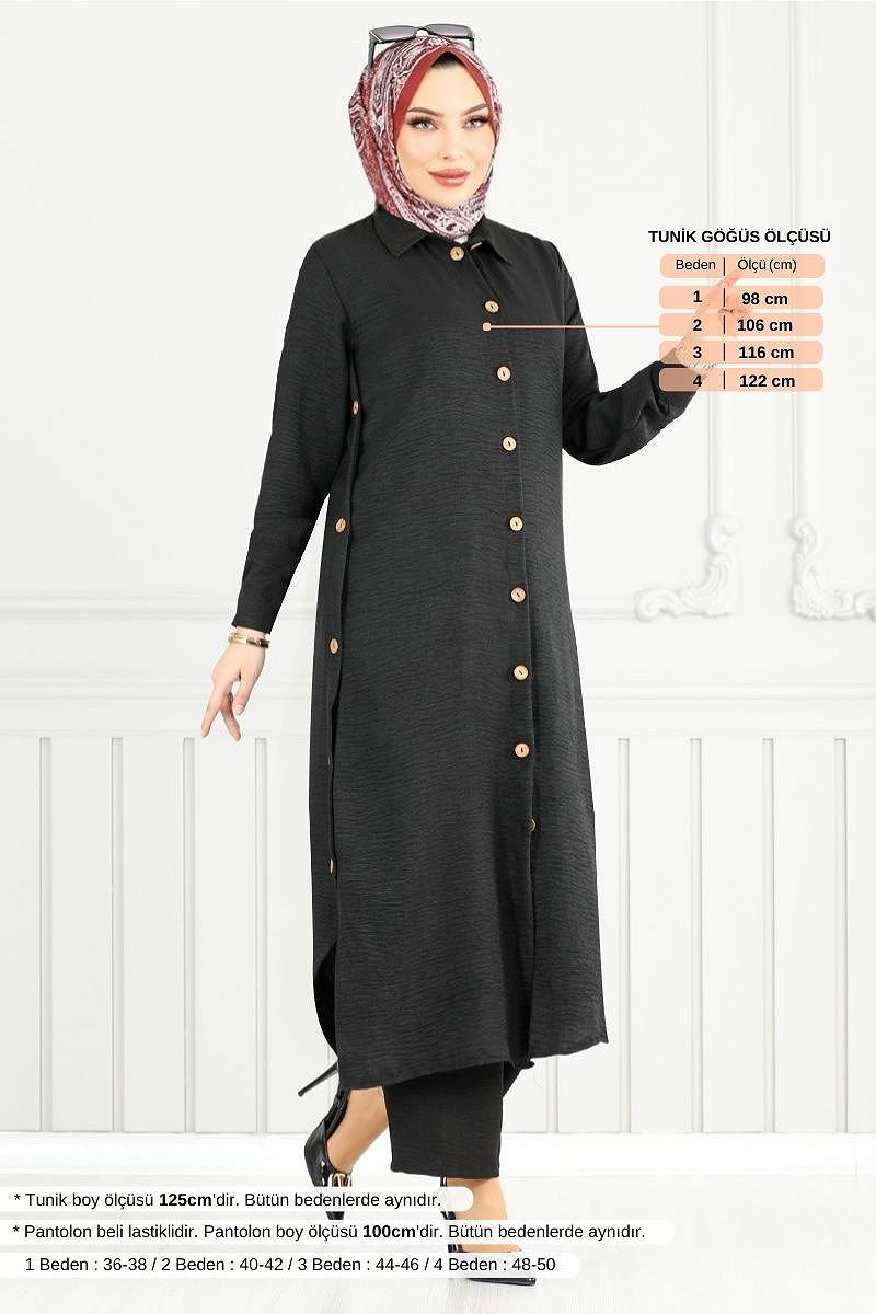 Ürün Özelliği : Yeni sezon tesettür moda ürünüdür. Ürün Gömlek yakadır. Ürün Önden düğmelidir. Yırtmaç düğmeleri aksesuardır.. Astarsızdır. Pantolon beli lastiklidir. Manşet düğmeleri aktiftir. Konsept fotoğraf çekimlerinden dolayı üründe ton farklılığı olabilir.