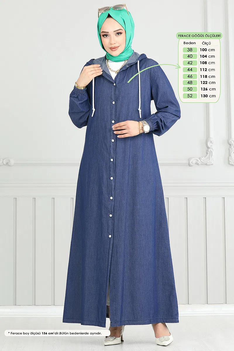 Önden Düğmeli Kot Ferace, her mevsim rahatlıkla kullanabileceğiniz şık ve fonksiyonel bir tesettür giyim ürünüdür. Tensel kot karışımı kumaştan üretilmiş olan bu ferace, kapşonlu tasarımı ve esnek manşetleri ile modern bir görünüm sunar. Önden düğmeli olması ise giyimini kolaylaştırır. 30 derecede hassas yıkama ile temizlenebilir, bu sayede uzun ömürlü kullanım sağlar. Her zaman şık ve rahat olmak isteyenler için ideal bir tercih!