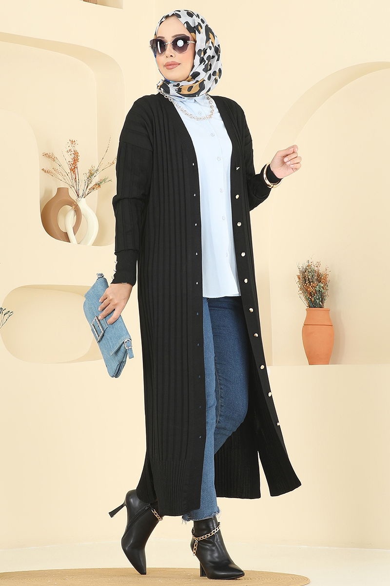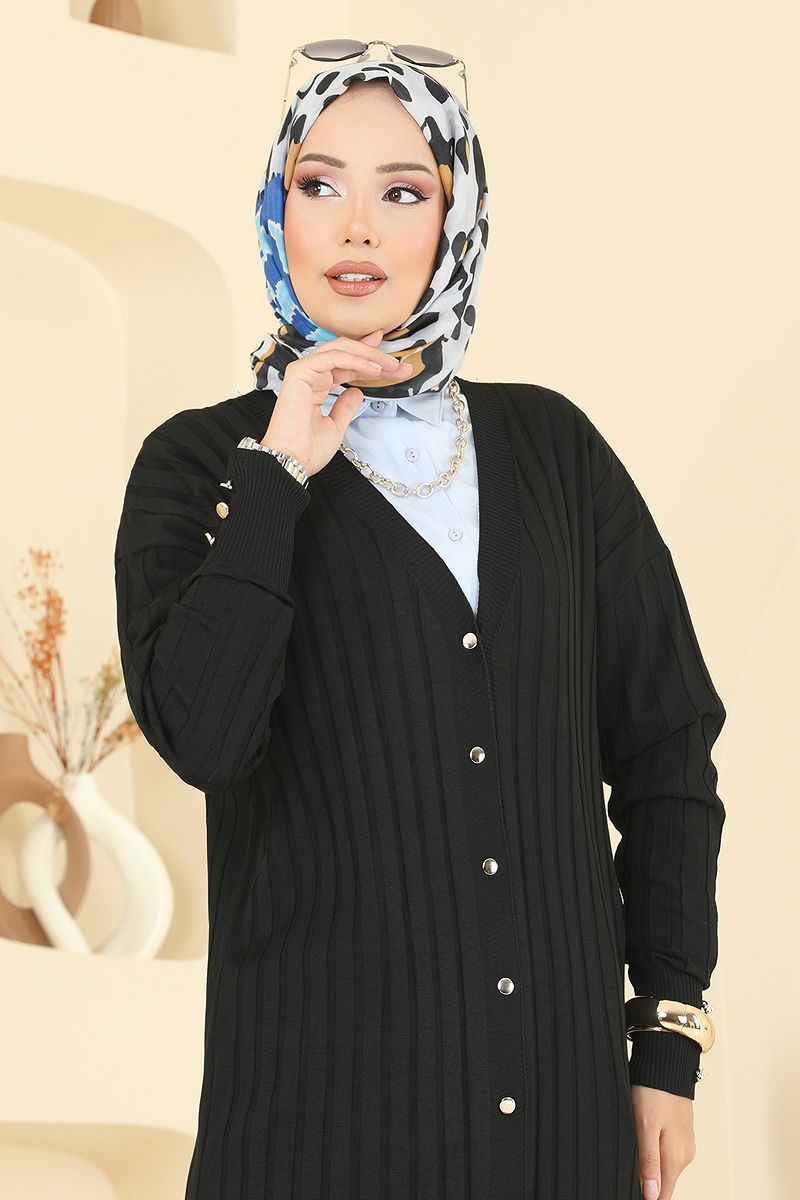 Önden Düğmeli Triko Hırka, tesettür için özel olarak tasarlanmıştır. Merserize Triko kumaş kullanılarak üretilen bu hırka, sonbahar ve kış aylarında şıklığınızı korumanızı sağlar. Önden düğmeli tasarımı ve manşetlerdeki aksesuar düğmeleri ile dikkat çekici bir görünüm sunar. Astarsız yapısıyla hafif ve kullanışlıdır. Standart beden olarak sunulan bu ürün, her gardıropta yerini almayı başarır.