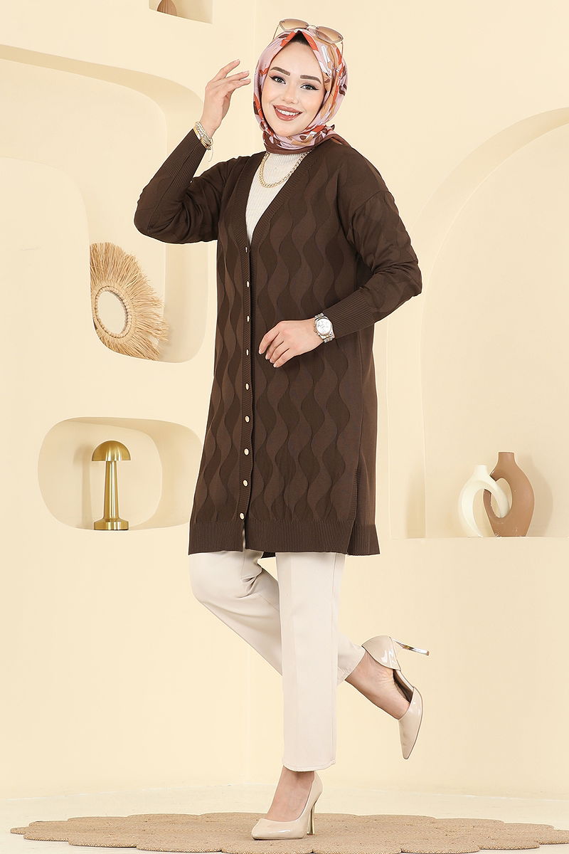Önden Düğmeli Merserize Triko Hırka 3239UZ662 Kahve