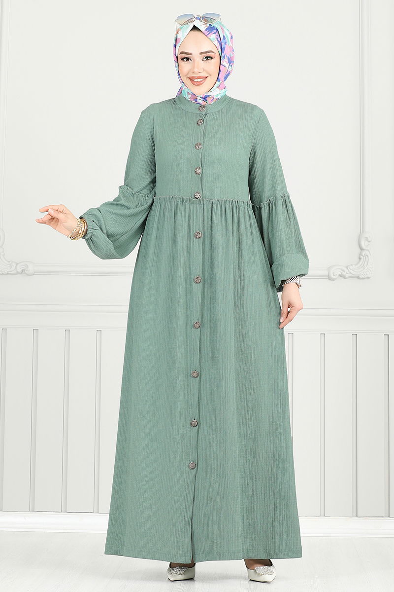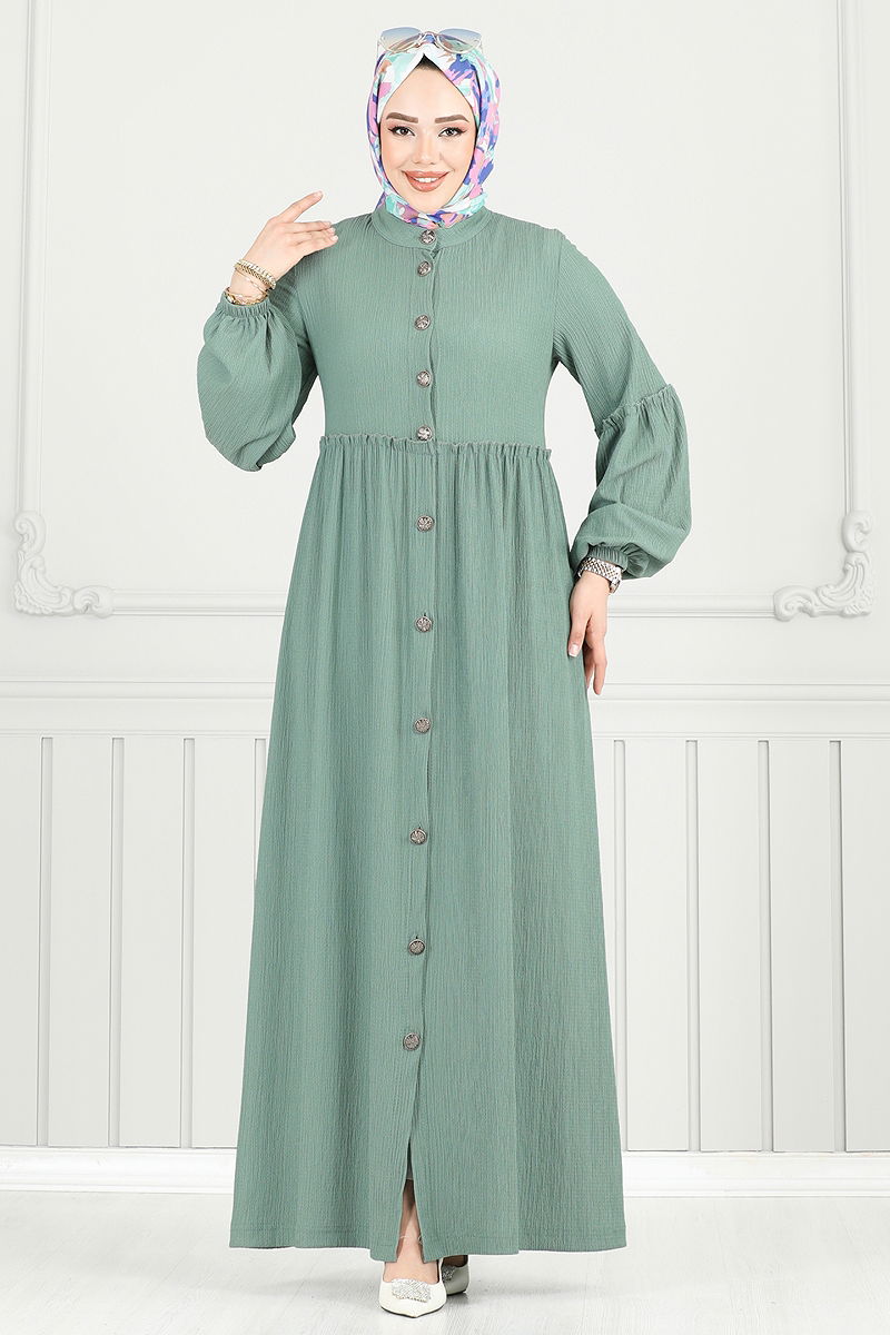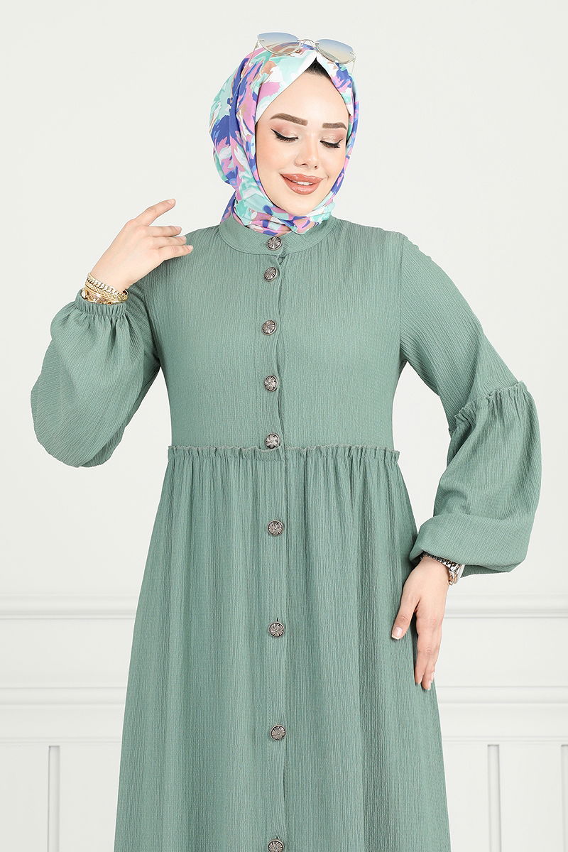Önden Düğmeli Tesettür Elbise Açık Mint