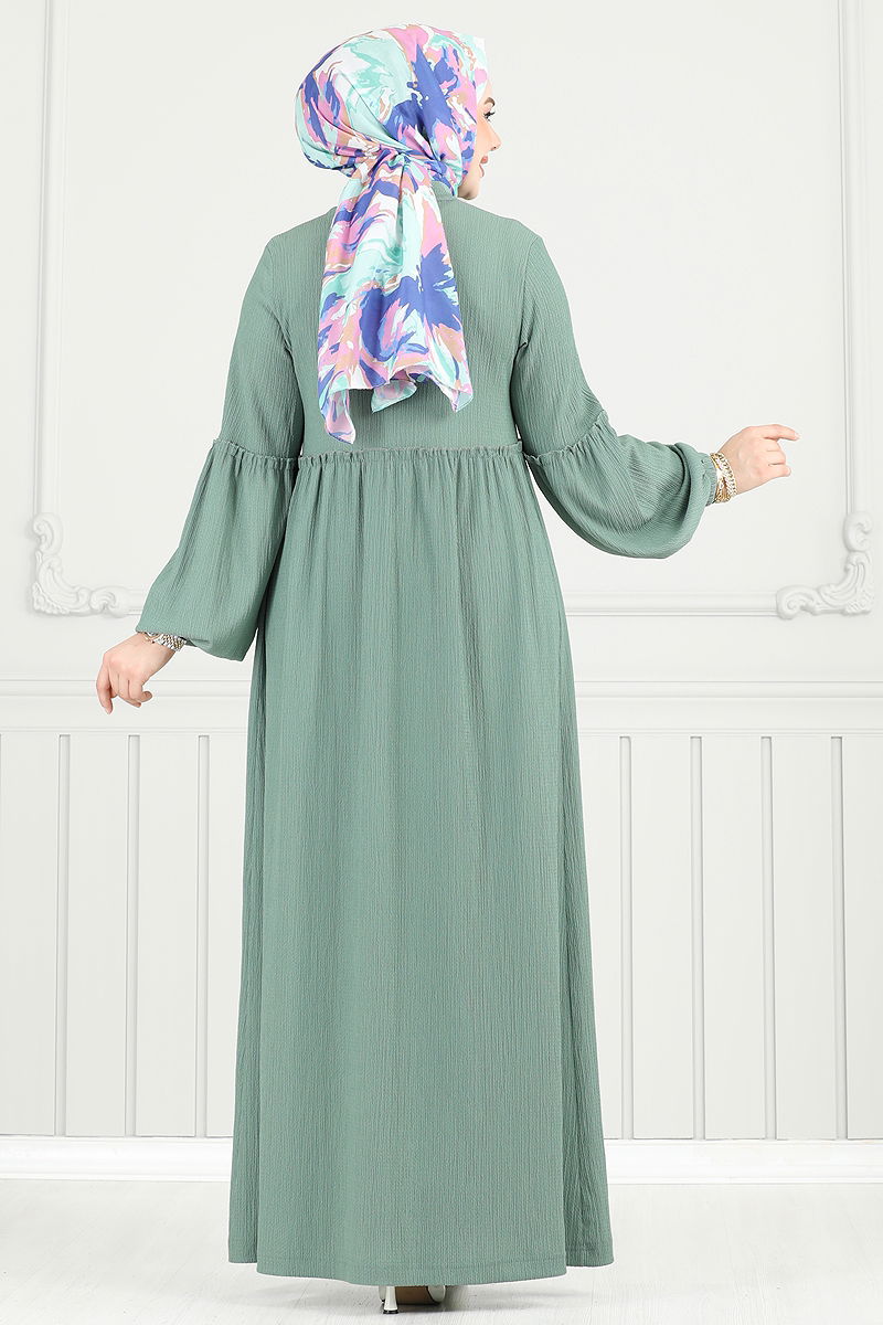 Önden Düğmeli Tesettür Elbise 405DVL817 Açık Mint
