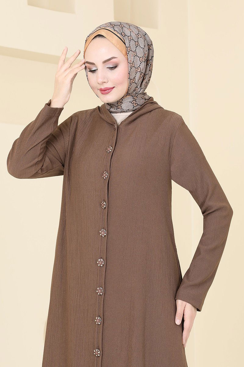 Önden Düğmeli Tesettür Elbise Ferace 3060HBS856 Kahve