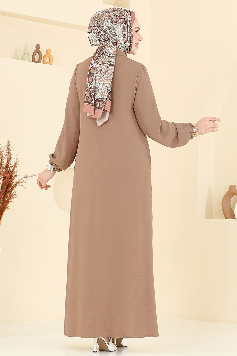 Önden Düğmeli Tesettür Ferace Koyu Vizyon