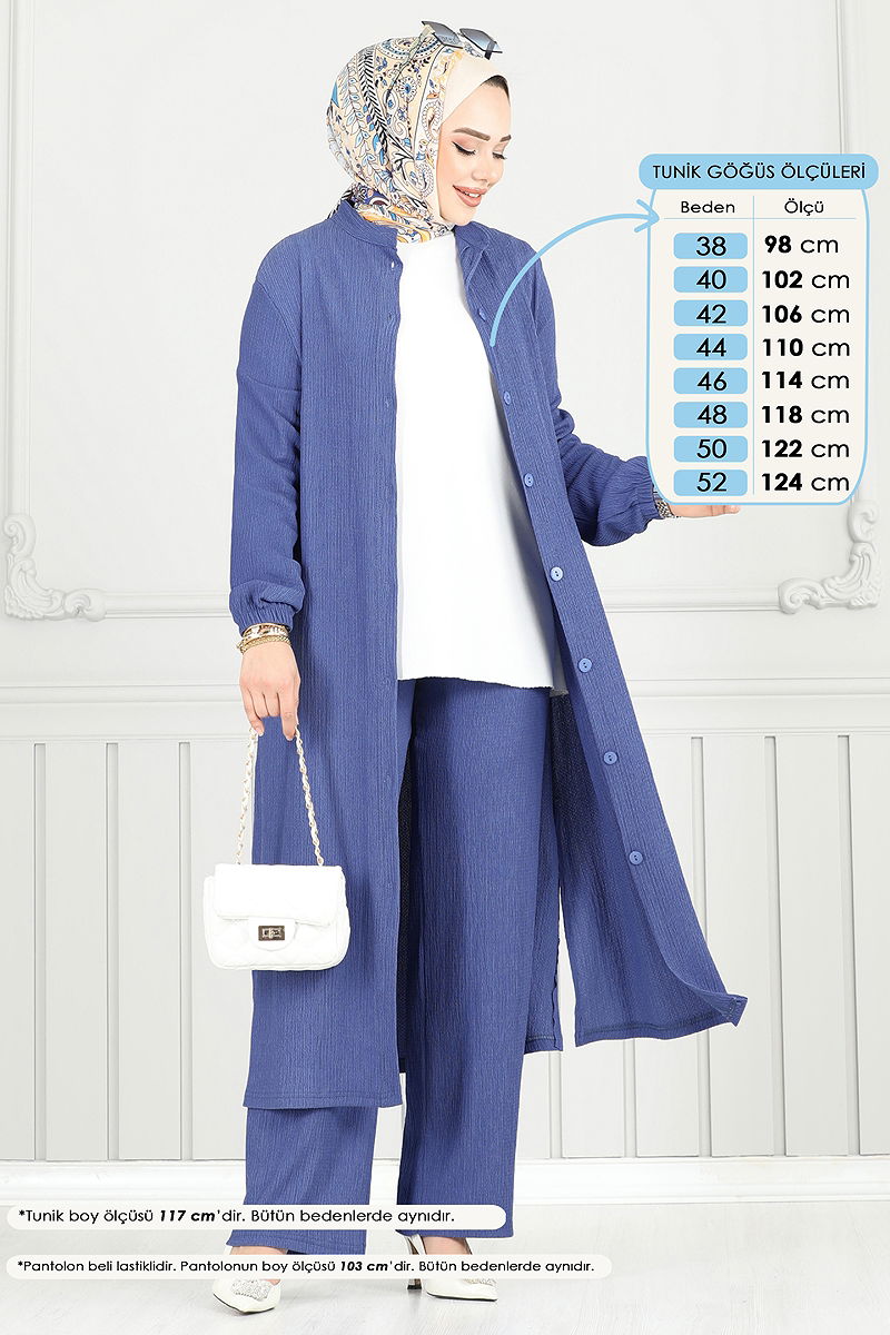 Önden Düğmeli Tesettür Takım İndigo