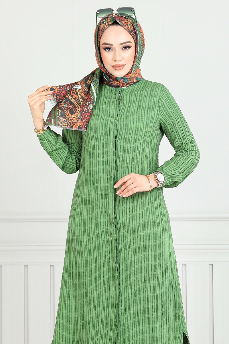 Önden Düğmeli Tesettür Takım Haki