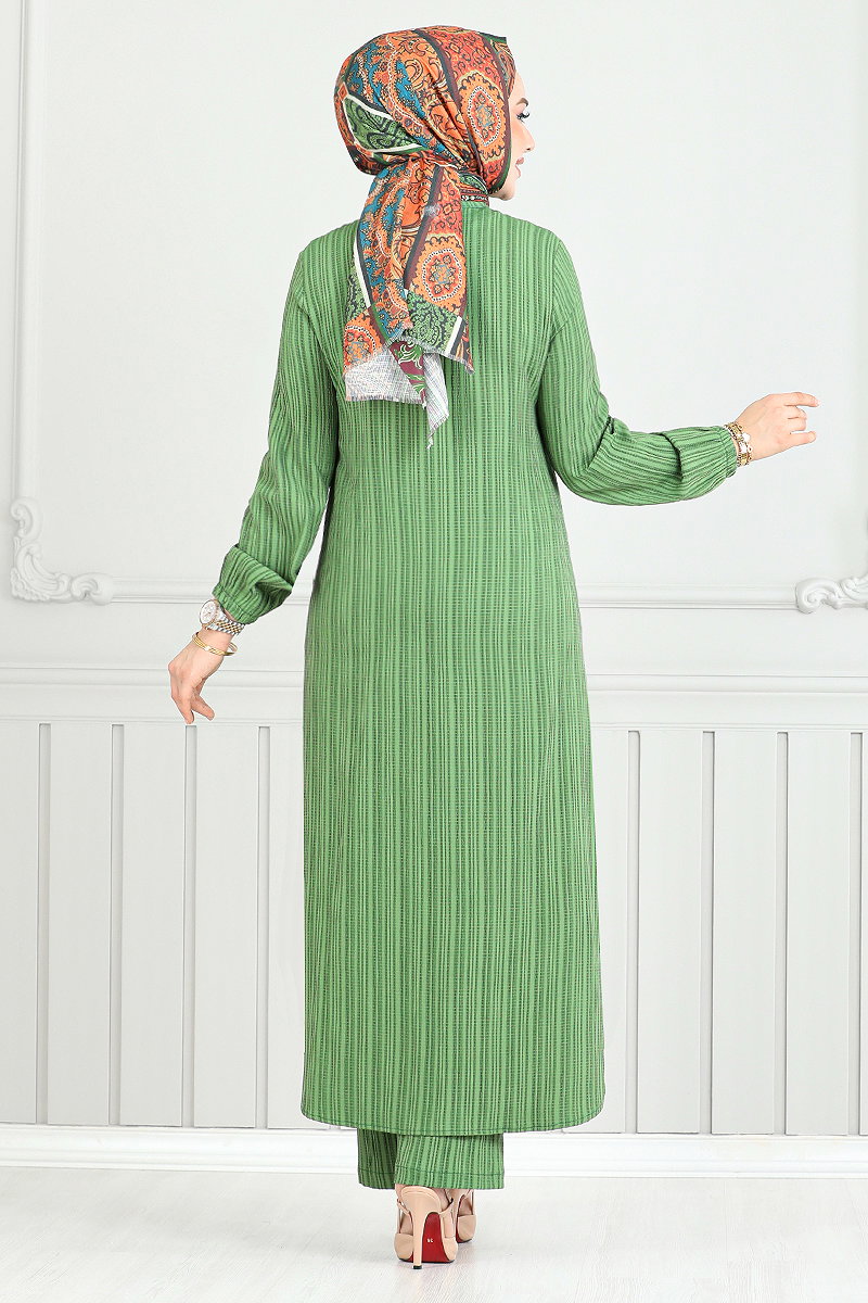 Önden Düğmeli Tesettür Takım 5676END900-M Haki
