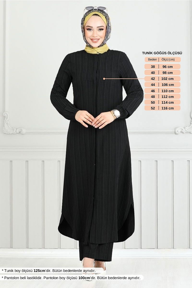 Önden Düğmeli Tesettür Takım 5676END900-M Siyah