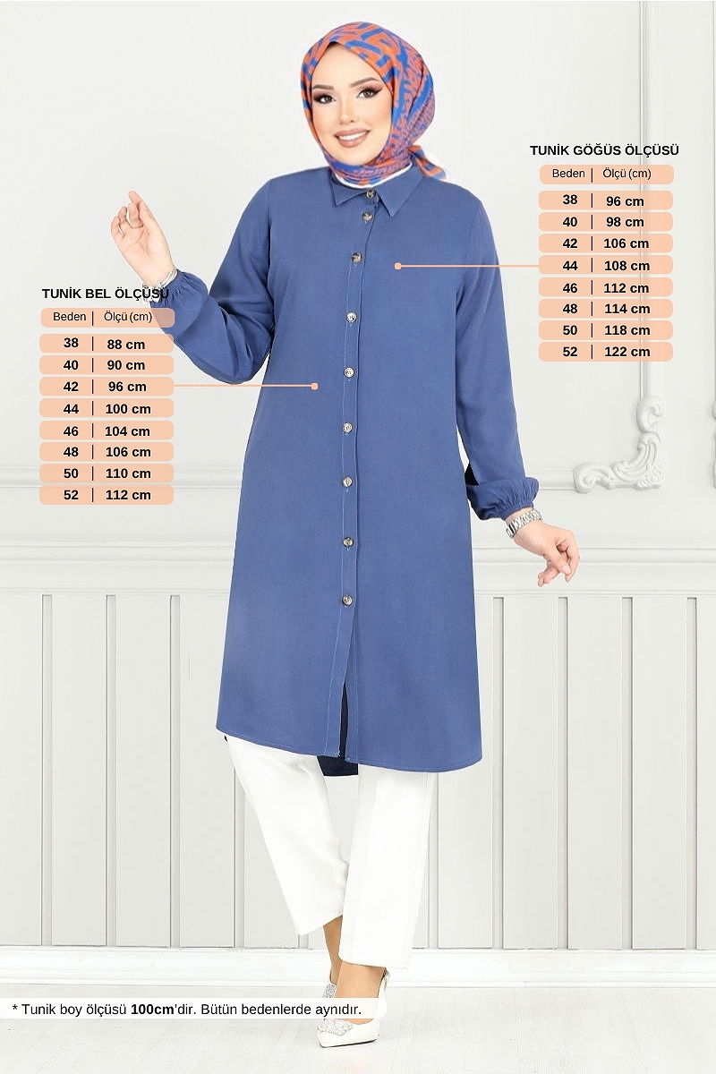 Önden Düğmeli Tunik 0171BGS895-M İndigo