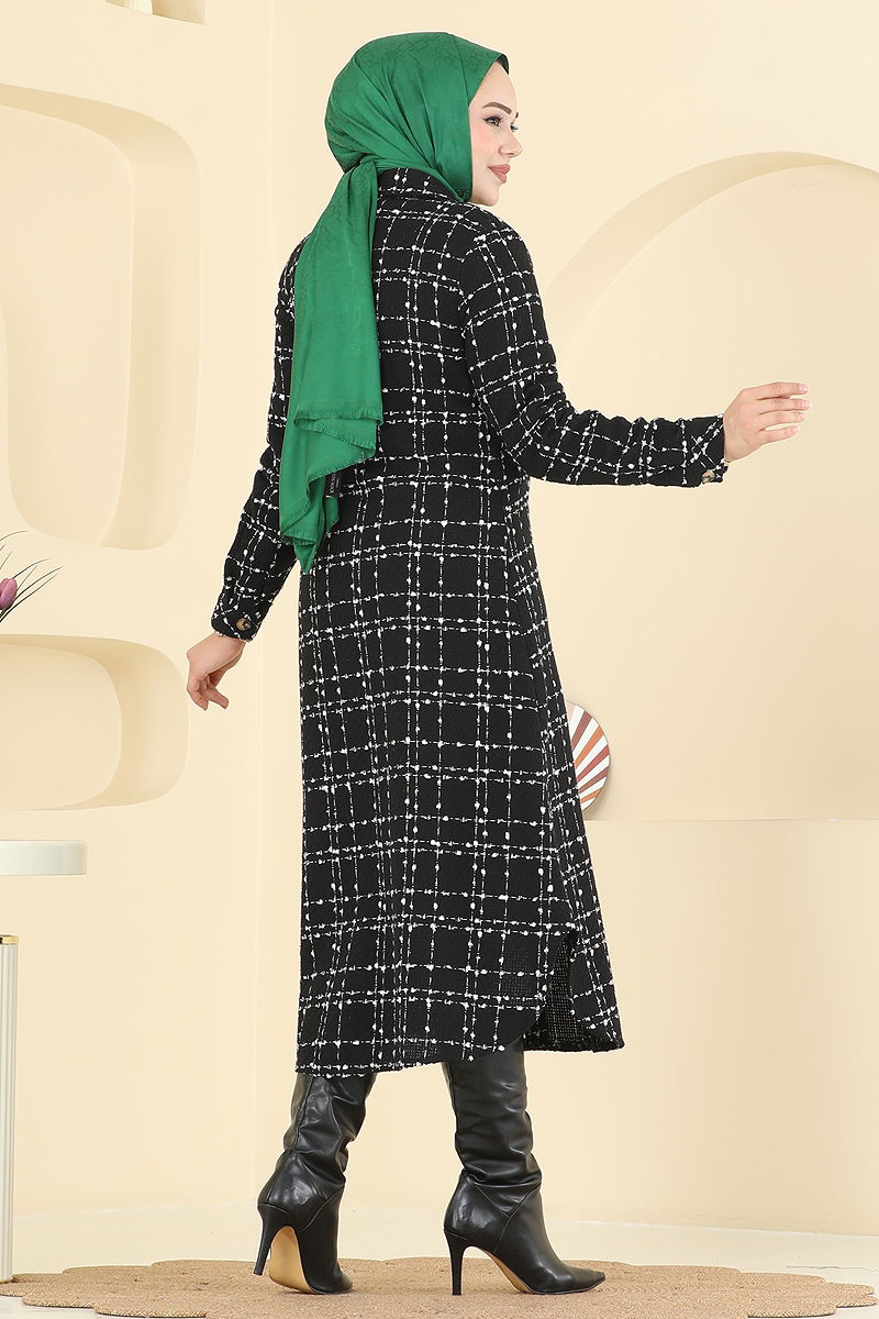 Önden Düğmeli Tüvit Tunik, sonbahar ve kış sezonu için ideal bir tesettür ürünüdür. Hassas yıkama ile 30 derecede yıkanabilen bu tunik, dayanıklı tüvit kumaştan üretilmiştir. Gömlek yaka ve önden düğmeli tasarımıyla şık bir görünüm sunar. Ürün 38 beden üzerindeki model ile fit bir duruş sergiler. Göğüs cep ve manşetsiz düğmeleri ise hem pratik hem de estetik bir detay katmaktadır.