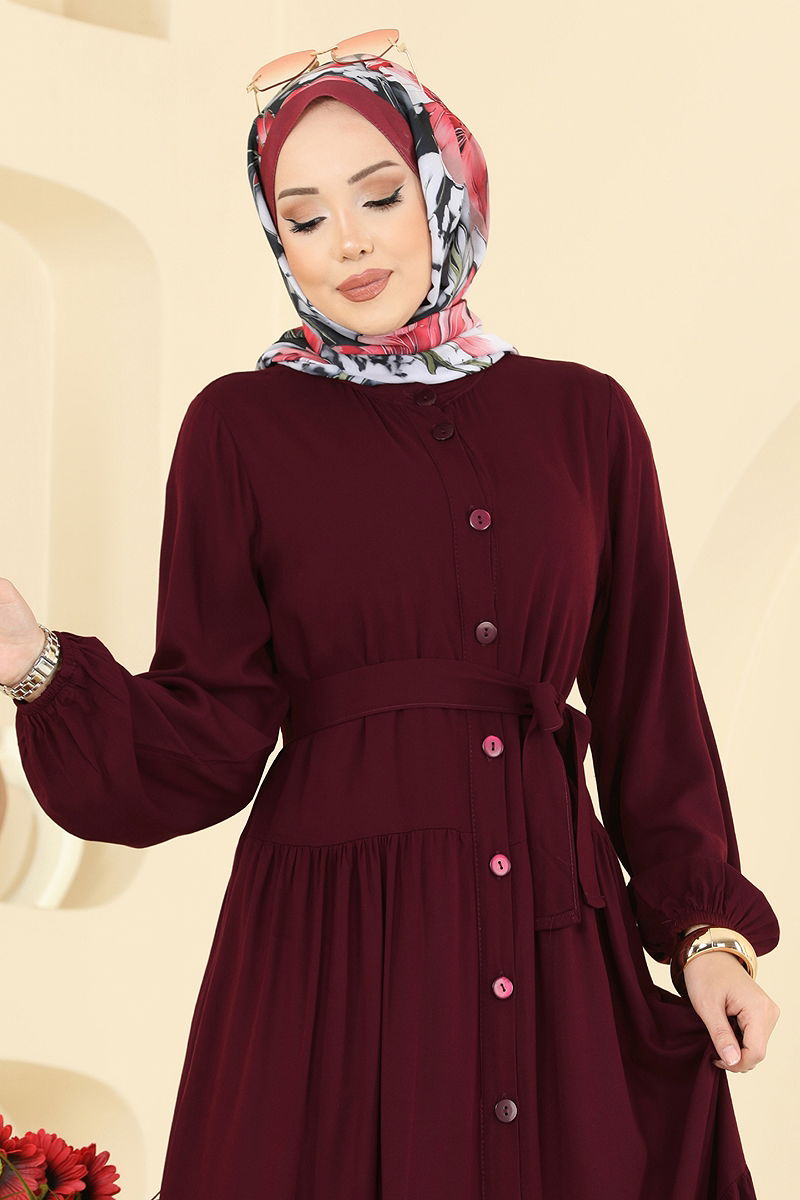 Önden Düğmeli Viskon Elbise 1124ERK1158 Bordo