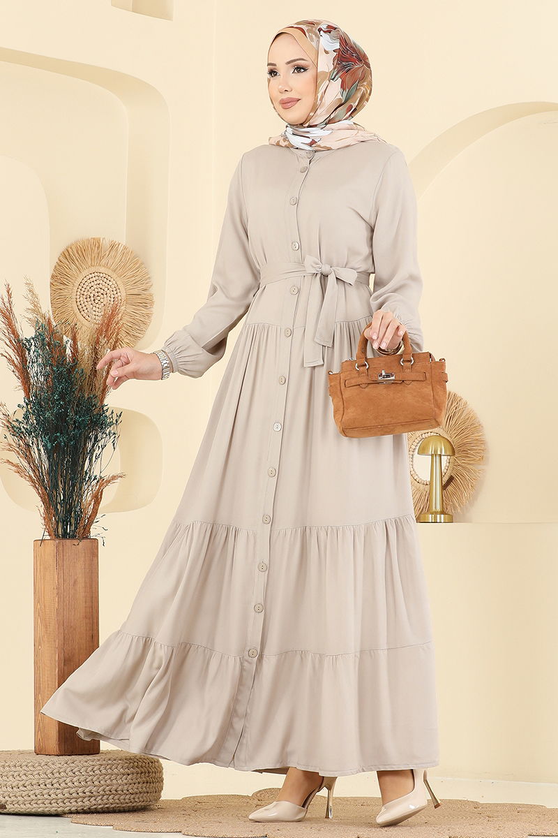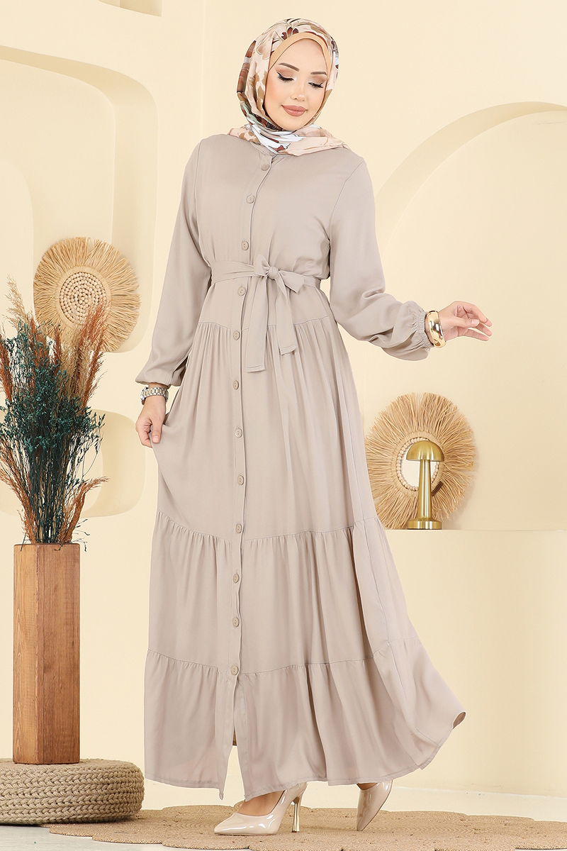 Şık ve konforlu bir seçenek olan Önden Düğmeli Viskon Elbise, her mevsim rahatlıkla tercih edebileceğiniz tesettür bir modeldir. Viskon kumaştan üretilmiş bu elbise, yarım Hakim yaka detayıyla modern bir görünüm sunar. Elbisenin ön kısmında bulunan düğmeler hem şıklığı hem de kullanım kolaylığı sağlar. Kemer detayı ise siluetinizi daha belirgin hale getirir. Elde yıkama ile temizlenmesi önerilen bu ürün, astarsız yapısıyla hafif ve rahat bir kullanım sunar. Dahil olan kemer ile farklı stil seçenekleri yaratabilir, manşetleri lastikli kolları sayesinde şık bir görünüme kavuşabilirsiniz.