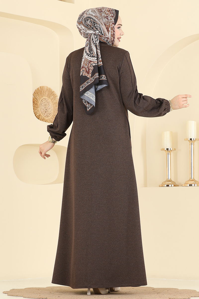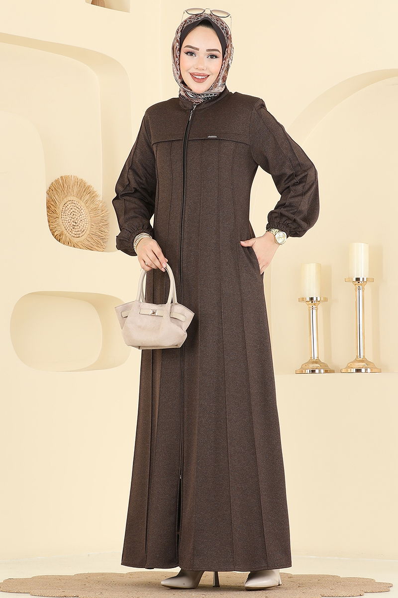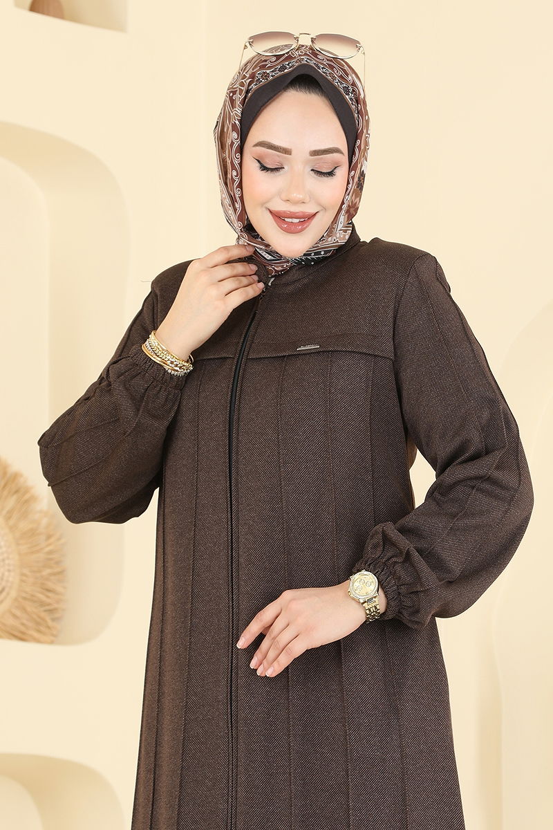 Önden Fermuar Detaylı Ferace 2154OZT1013 Kahve
