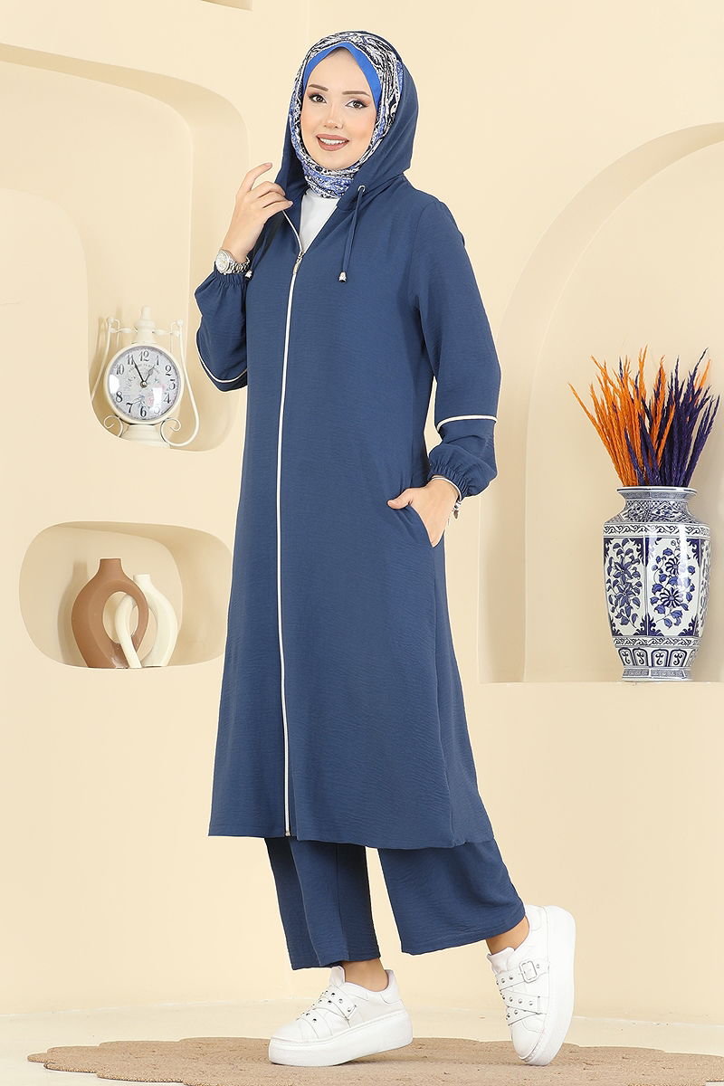 Önden Fermuarlı Aeroobin Takım PL9189 İndigo
