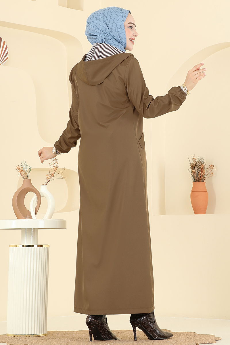Sonbahar ve kış mevsimleri için ideal olan bu trençkot, tesettür giyim tarzına uygun tasarlanmıştır. Önden fermuarlı ve kapşonlu yapısı, soğuk havalarda kullanım kolaylığı sağlar. 30 derecede hassas yıkama ile temizlenebilir özelliği sayesinde uzun süreli kullanım için idealdir. Bondit kumaştan üretilmiş olup, astarsız ve manşeti lastiklidir. Pratik cepli tasarımı, günlük kullanımınızda ihtiyaçlarınızı yanınızda taşımanız için mükemmeldir. Modelin üzerindeki 38 beden örneği ile elegan bir görünüme kavuşun.