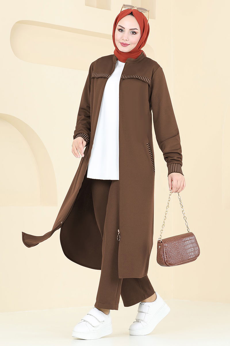 Önden Fermuarlı Garnili Takım 2554SL432 Kahve