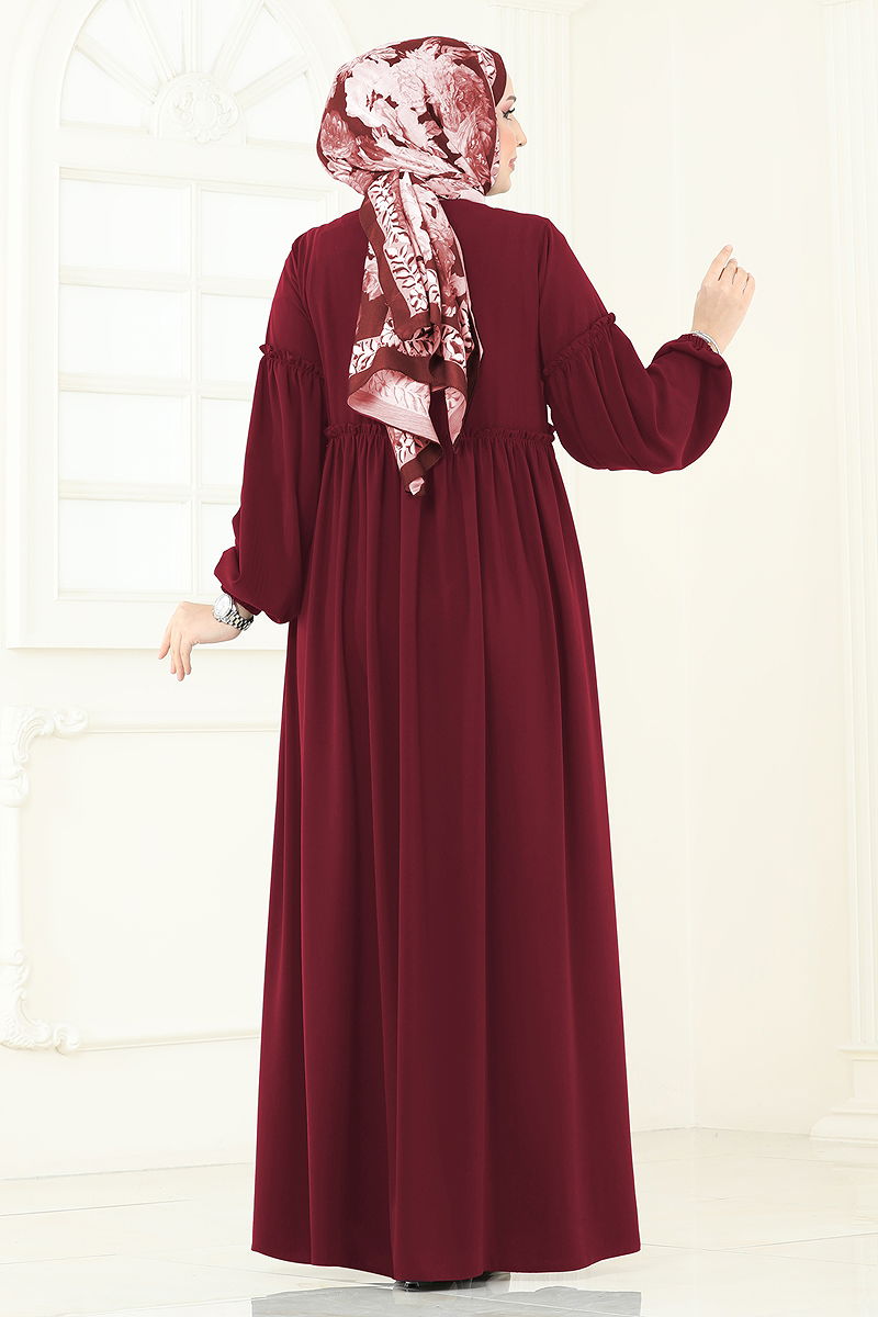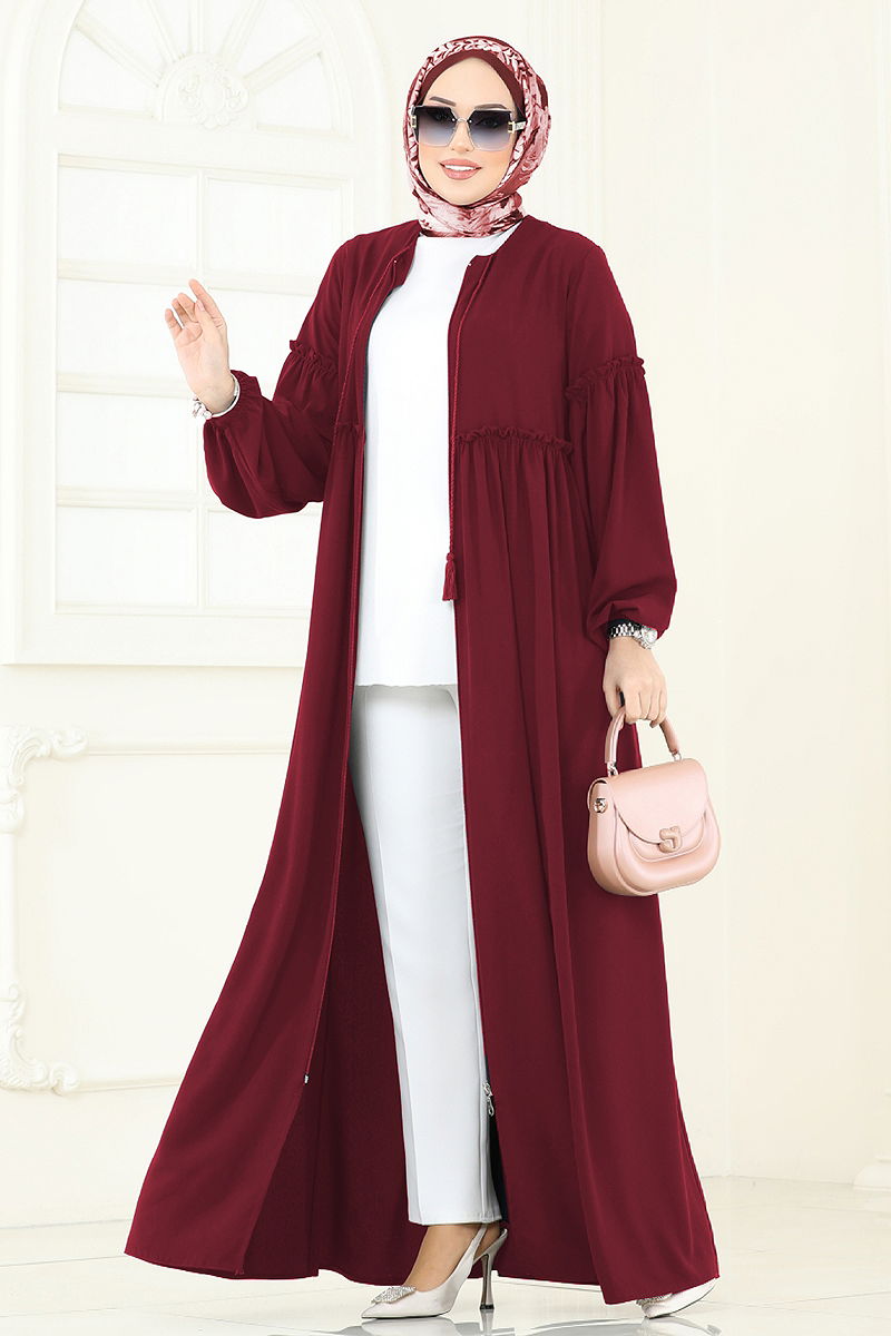 Önden Fermuarlı Medine İpeği Ferace 2638SL432 Bordo