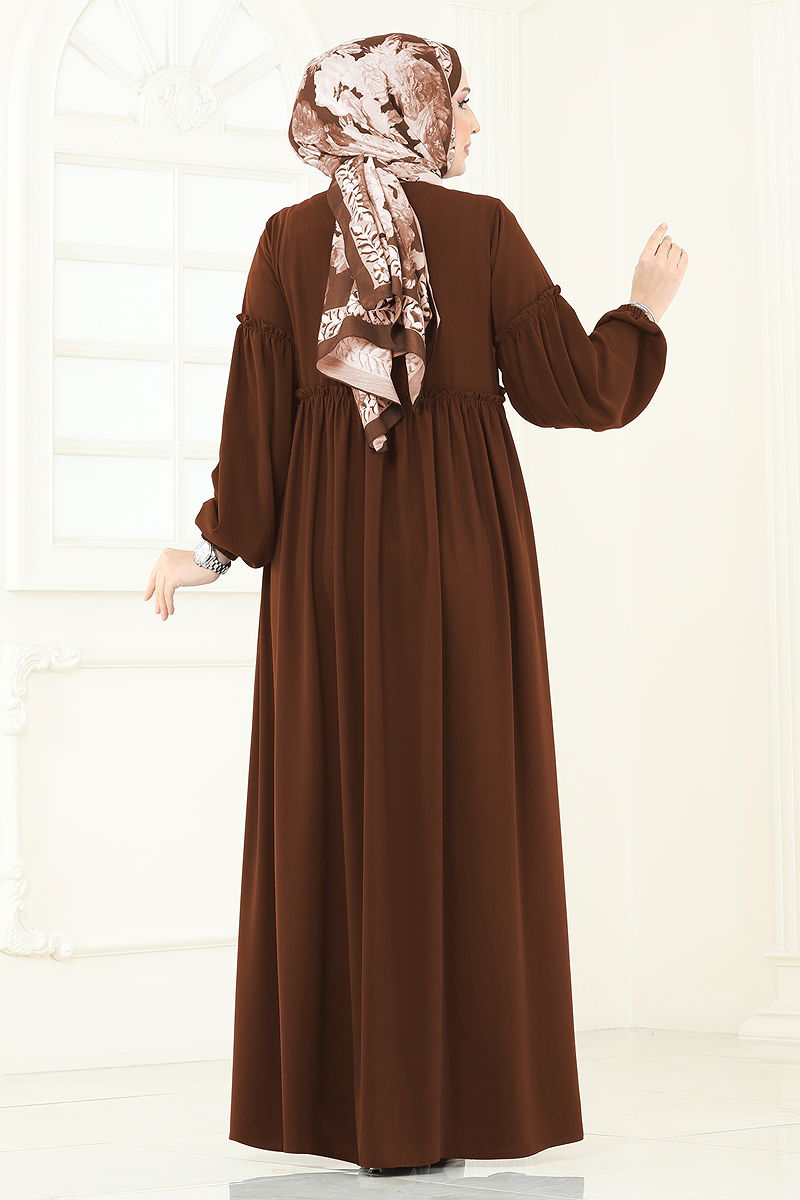 Önden Fermuarlı Medine İpeği Ferace Kahve