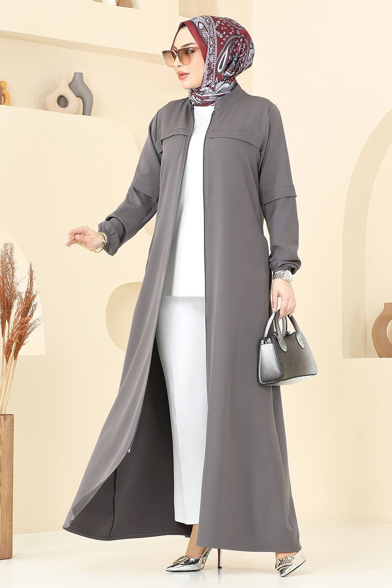 Önden Fermuarlı Pardesü Ferace Antrasit