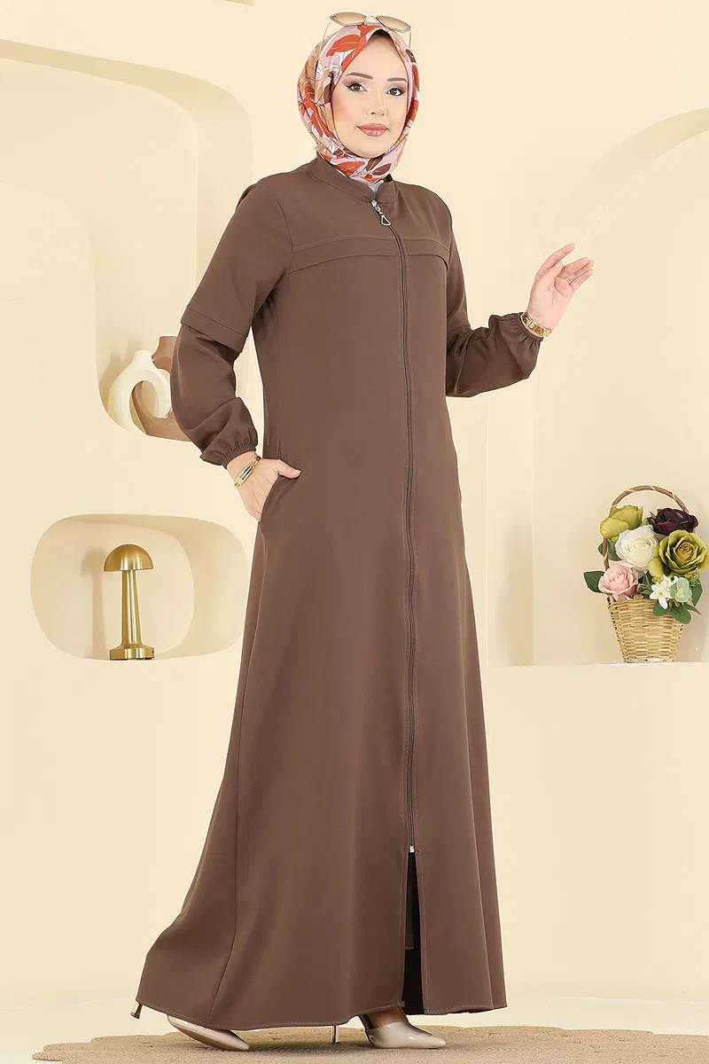 Önden Fermuarlı Pardesü Ferace Kahve