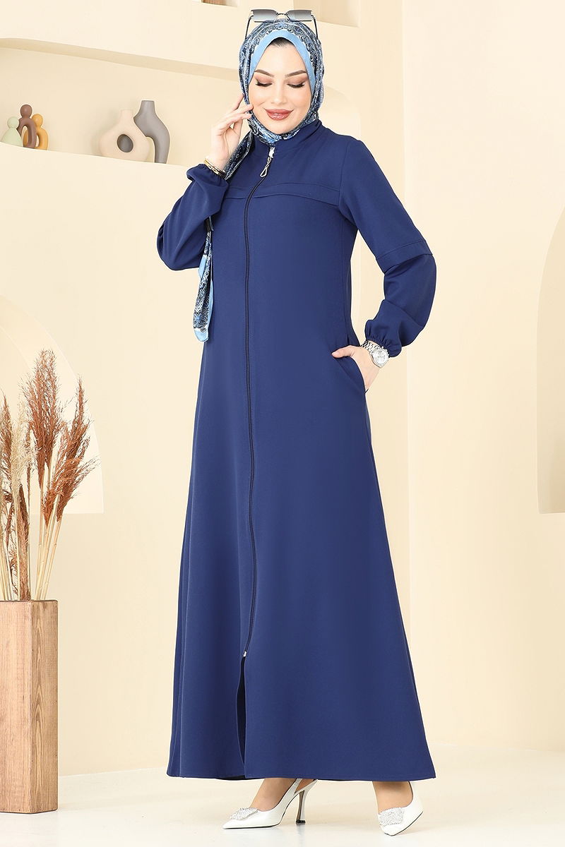Önden Fermuarlı Pardesü Ferace, modeliyle dört mevsim rahatlıkla kullanabileceğiniz şık bir tesettür ürünüdür. Hassas yıkama şartlarına uygun şekilde 30 derecede yıkanabilen bu ürün, dayanıklı Dabıl kumaştan üretilmiştir. Yarım Hakim yaka tasarımıyla modern bir görünüm sunan ferace, astarsız yapısı ile hafif ve kullanışlıdır. Pratik bir kullanım için önden fermuarlı olan bu modelde, manşetleri lastikli ve cep detayı bulunmaktadır. Üzerindeki 38 beden örnek model ile ideal ölçülerde tasarlanmıştır.