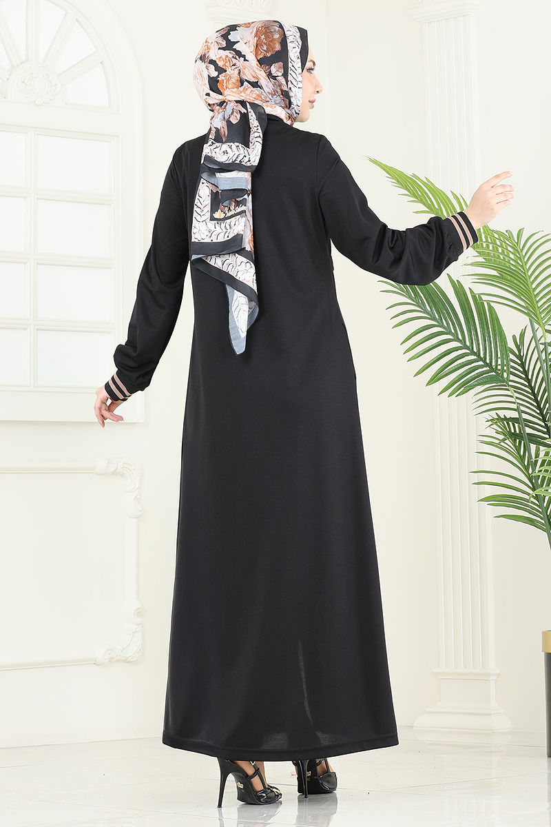 Önden Fermuarlı Pardesü Ferace Siyah