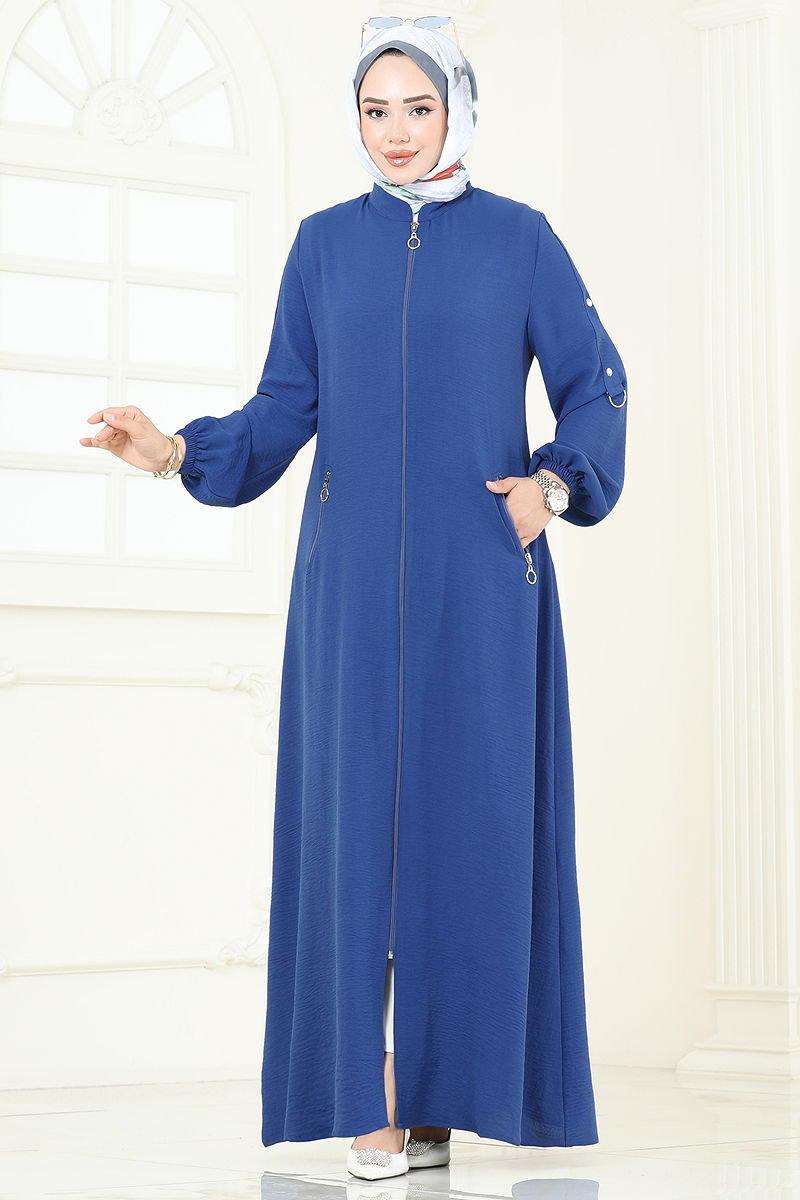 Yenilikçi tasarımı ile Önden Fermuarlı Pardesü Ferace, dört mevsim rahatlıkla kullanılabilir. Hassas giysiler için ideal olan bu ürün, 30 derecede yıkanabilir ve aerobin kumaş yapısı sayesinde uzun ömürlüdür. Yarım hakim yaka tasarımı ile şıklığı ön planda tutan ferace, astarsız yapısıyla hafif ve konforludur. Fermuarlı cebi ve lastikli manşeti ile pratik kullanım sunar. Bu modern ferace, her gardırobun vazgeçilmezi olmaya aday.