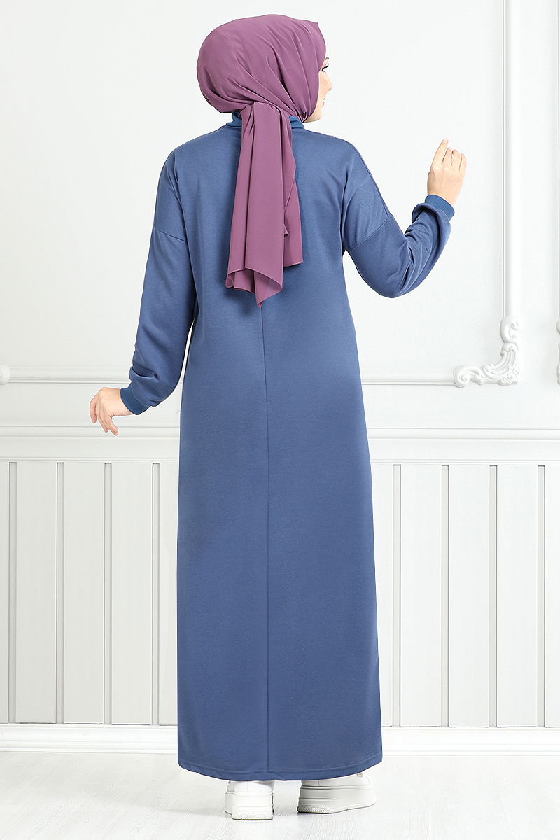 Önden Fermuarlı Spor Elbise İndigo