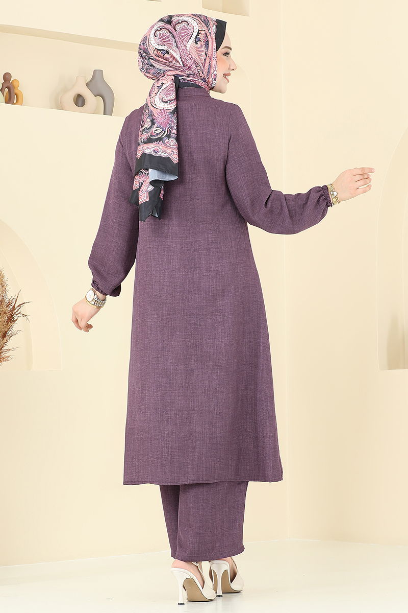 Şıklığı ve konforu bir arada sunan Önden Fermuarlı Keten Takım, dört mevsim rahatlıkla kullanılabilir. Hassas yapısıyla 30 derecede yıkanabilme özelliğine sahip bu tesettür takım, keten kumaştan üretilmiştir. Gömlek yaka detayına sahip olan ürün, astarsızdır ve ön fermuarlı tasarımıyla kolay kullanım imkanı sunar. Bluz ile kombinlenerek fikir vermek için sunulan bu setin içerisinde bluz yer almamaktadır. Pantolonun beli lastiklidir, rahat bir oturum sağlar. Gamzenizle uyum sağlayacak bu takım, manşetleri lastikli kap ve pantolondan oluşmaktadır.