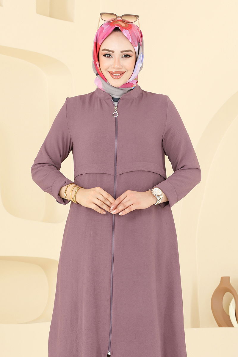 Önden Fermuarlı Tesettür Takım Koyu Lila