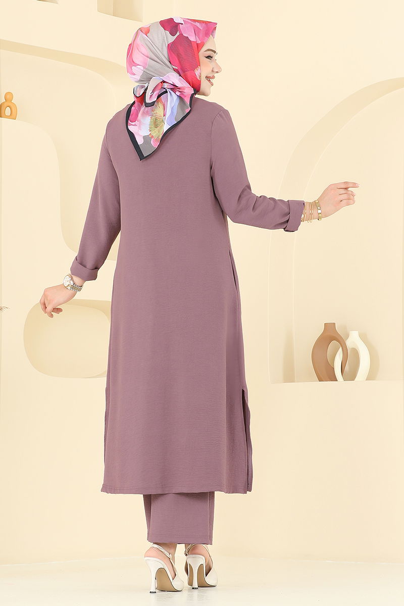 Önden Fermuarlı Tesettür Takım 379DVL817 Koyu Lila