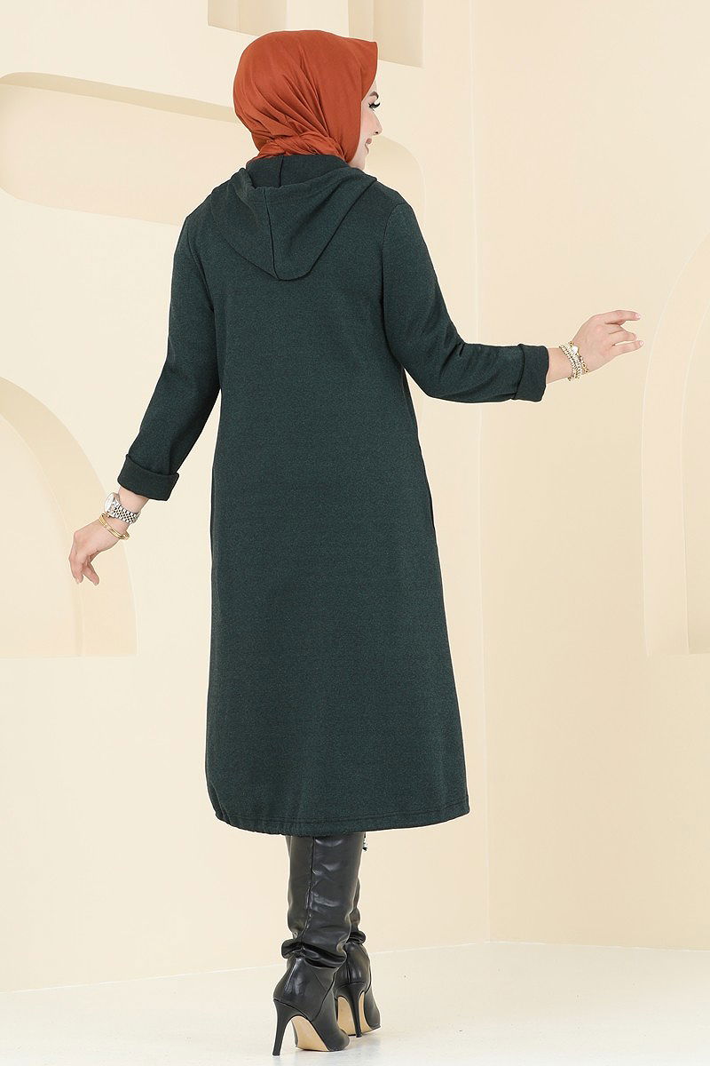 Önden Fermuarlı Tivit Kap Zümrüt